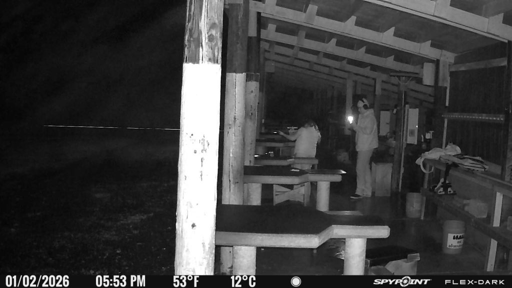 We had a couple shooting well after dark on the rifle range the other night. This is against the club rules and very dangerous as you can’t see what is downrange. If you recognize these folks please let me know. Mark Mills-Range Manager